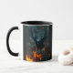 Esta taza de Curiosidad Oscura presenta un cuervo que se eleva de las cenizas — un símbolo hipnótico de transformación y renovación.