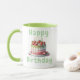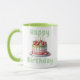 Taza de cerámica “Happy Birthday” con un diseño fresco y encantador, perfecta para celebrar cumpleaños de una forma especial. Presenta una ilustración de una deliciosa torta decorada con frutas en tonos suaves, acompañada de detalles sutiles que transmiten alegría y calidez. Su interior y asa en color verde le dan un toque moderno y vibrante. Ideal como regalo original o para disfrutar de tu bebida favorita en un día especial.