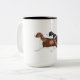 Diversas tazas clasificadas a elegir (del control lado del abajo a la derecha hacia fuera de la pantalla) de ofrecer dos perros de aguas de saltador inglés hermosos.
