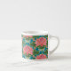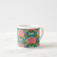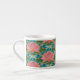 Una hermosa taza de café de Espresso, con un patrón de lirios de agua rosados y libélulas azules, de un collage de papel pintado a mano de Judy Adamson. Excelente regalo para alguien con un cumpleaños de julio; parte de la colección Posh & Painterly 'Lily Pond'.