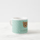 Un adorable ilustracion de oso ocupa el centro de la escena con los diferentes puntos de polka azul y blanco. Fácil de personalizar con un nombre.