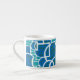 Un elegante café Espresso Mug con un diseño abstracto de color turquesa, azul profundo, verde marino y blanco, a partir de una huella de seda de Judy Adamson.