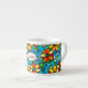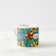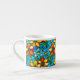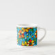 This espresso cup features a vibrant floral pattern bursting with color—sunny yellows, warm oranges, deep reds, and refreshing blues set against a rich blue background. The compact size of the cup makes the artwork feel even more expressive, turning each shot of espresso into a cheerful, uplifting moment. At the center, an elegant oval label with the word BLOOM adds a touch of inspiration, celebrating growth, positivity, and everyday joy. Perfect for espresso lovers, this cup brings a bright, artistic accent to morning rituals and coffee breaks.