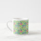 Una taza espresso muy bonito, con un patrón de primrosis rosa, amarilla y azul, de un diseño acuarela pintado a mano por Judy Adamson.