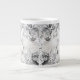 taza de personalizado con collage de invierno con adornos blancos y plateados, copos de nieve, flores, campanas y purpurina. Disponible en varios tamaños.