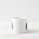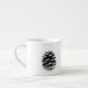 Taza del café express con el cono del pino en frente y la parte posterior.