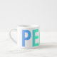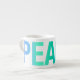 Una taza de expreso moderna y divertida, con la palabra PAZ envolviendo la taza. Un gran regalo para usted o un amigo para darle un toque de color a la cocina. Parte de la colección "Nice Words". "Lía en vivo amor" "Amar la paz la felicidad"