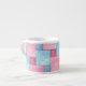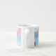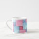 Un bonito, una taza espresso, con un mosaico de tintes de denim rosa y azul, de un diseño acuarela pintado a mano por Judy Adamson.