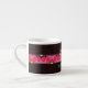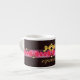 Para los amantes del espresso, la obra original de ZoeSPEAK en esta Copa Espresso incluye una banda de rosas rosas y corazones dorados. En el centro de la banda de rosas hay dos arcos de cinta dorada unidos por dos corazones dorados. Los arcos forman otro corazón donde se encuentran. El fondo es una rica textura marrón chocolate, y hay un texto dorado debajo de la banda que dice "espresso". Esto puede cambiarse o eliminarse si lo prefiere.
