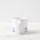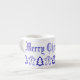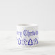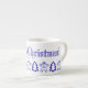 ¡Feliz Navidad! o tu nombre o texto Cute Gingerbread Man y patrón de árbol de Navidad Azul y Blanco Espresso Mug Único Navidad Personalizado Regalo para los amantes del café.