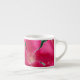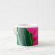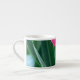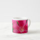 Espresso en el jardín - la fotografía original de MaeFlowers en esta colorida Copa Espresso es un cierre de flores rosadas contra hojas verdes, con un toque de cielo azul claro mostrándose a través. En la foto, los pétalos de flores están muy abiertos. El centro de la flor es un suave marfil amarillo que se mezcla en rosado en sus bordes exteriores deslumbrados.