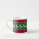 Es una apariencia de suéter trenzado - ¡en una impresión! Un patrón ricamente detallado que presenta renos blancos que se extienden por un campo verde rodeado de Navidades rojos con adornos blancos.