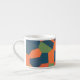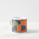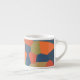 Una atractiva taza de café Espresso, con un patrón abstracto en colores vibrantes - Naranja flamante, azul medianoche y verde profundo, de un diseño digital de Judy Adamson.