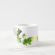 Esta pequeña taza blanca del café express de la porcelana ofrece un mirlo de alas rojas en una manera de la rama para arriba en un árbol del álamo temblón. Él está mirando a escondidas hacia fuera de detrás las hojas verdes de oro. La imagen se repite en los lados izquierdos correctos y.
