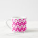 Moda Espresso Coffee Mug con un patrón de formas decorativas de chevron en color rosa dulce y blanco. Parte de la colección "Candy Floss" de Posh & Painterly.