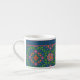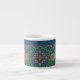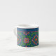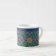 Una moda Espresso Mug, con un colorido patrón Floral Rangoli en un fondo azul profundo. Este diseño, que forma parte de la colección "Rangoli" de Posh & Painterly, se puede ajustar para que se ajuste a cualquier Mug.