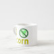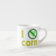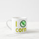 Odio el maíz. El diseño utiliza letras amarillas, un corazón verde y el signo internacional "NO" para leer "Odio el maíz". Para aquellos que no lo "aman".