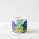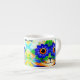 Copa Espresso con la pintura animal de Louis Wain Cat Flower Eyes (1860-1939). Un gato arco iris sonríe ampliamente. Las flores azules le cubren los ojos. Un regalo maravilloso para los amantes de los gatos y el arte inglés.