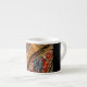 Un diseño abstracto que representa los patrones encontrados en las cubiertas de piedra cubre esta única Taza de Espresso.