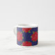 Una moda pequeña de café expresso Mug, con un patrón de rosas rojas en un fondo azul de media noche que puede cambiar fácilmente, usando los botones Editar > Fondo. Este patrón, que forma parte de la colección "Corazones y Rosas" de Posh & Painterly, se adaptará a todos los tamaños de la taza.