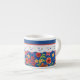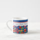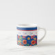 Un pequeño café expresso para personalizar, con un toque nostálgico y una mini impresión floral retro sobre un fondo azul profundo, adornado con efecto de encaje blanco. Parte de la colección "Granny Print" de Posh & Painterly, este patrón de collage de papel pintado a mano puede ajustarse fácilmente para que se ajuste a cualquier Mug.