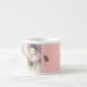 Taza de espresso blanco con una imagen vintage, a ambos lados, del payaso Pierrot triste con una lágrima en el ojo y una rosa rosa rosa rosa de tallo largo en la mano, rosa, con adornos de rosa y cinta. Pierrot es un personaje que ha evolucionado en apariencia con el teatro y el arte romántico, decadente, simbolista y modernista precoz. Esta imagen es la imagen popular de Pierrot en los años 80. Vea la combinación de tarro de caramelo, matraz, cántaro, placa de melamina, placa de porcelana, placa de papel, vidrio de disparo, tetera y tiras acuáticas. Ver toda la colección de Mug Tubular 80 en la FOOD/BEV | Sección de platos.