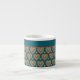Un tazón de café espresso de diseño, con un patrón de corazones verdes y rojos sobre un fondo verde azulado oscuro. Puede agregar un nombre o texto a la banda azul superior si lo desea. Como alternativa, déjelo en claro.