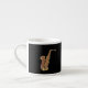 Diseño con ilustracion de saxofón sobre fondo negro; diseño de instrumentos musicales de jazz sencillo