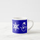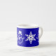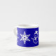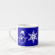 Patrón de Snowman y Copos de Nieve Blue and White Espresso Mug Navidades únicos y personalizados para los amantes del café.