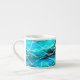 Una atractiva taza de café Espresso, con un diseño "Waves" abstracto de color turquesa, verde oscuro, blanco y negro, procedente de una acuarela de Judy Adamson. También se ofrecen bolsitas de té, cántaros y varios tazas.
