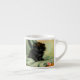 ¡La Copa Espresso con un gatito negro adorable! El gatito de ojos verdes se sienta en una manta con una flor rosa. ¡Un bonito regalo para los amantes del gato y del arte victoriano!