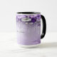Hermosas flores púrpuras con perlas colgantes Taza