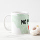 Una taza que contiene el mapa de Jamaica con las palabras ningún problema lunes escrito en él y una hoja jamaicana de la hierba en el centro de parte delantera superior de la taza