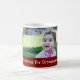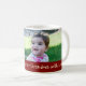La taza de encargo de la foto de la abuela de las Felices Navidad en rojo, amarillo elegante y verde con el modelo festivo de las rayas con el texto y la foto adaptables, perfecciona como regalo de vacaciones.
