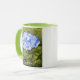 Aclare su café de la mañana con un hydrangea azul brillante.