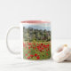 Esta taza es una taza del dos-tono con en el exterior que usted verá una fotografía maravillosa de un campo de la amapola, y el interior que tiene un tono del NIC del rosa que felicita la imagen.