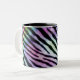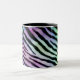 una taza con el estampado de zebra del arco iris en él