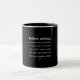 Taza de café personalizada de 444ml. ¡En cuanto a tamaño sólo puedo decir que enorme! pero es lo que esperaba así que estupendo. En el asa me entra la mano entera y no sólo tres dedos como me ocurría con las otras tazas. También comentar que es el tamaño que se ve en las series americanas, tanto para café como para infusión. En cuanto al acabado decir que es correcto, con poco tiempo de uso no puedo especificar mucho más. Pude escoger el nombre y el color pero no la tipografía, quizás esa elección pueda decidir a más gente. En términos generales y por el momento, buena opinión.
