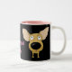 La taza de la mamá de la chihuahua con una vista delantera de la nariz grande de una chihuahua en un lado de la taza y su extremo posterior adorable apoyan la opinión sobre el otro lado de la taza. Los colores y el texto del fondo pueden ser cambiados. Apenas haga clic en el personalizar él botón.