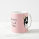 La taza de la mamá del border collie con una vista delantera de la nariz grande de un border collie en un lado de la taza y su extremo posterior adorable apoyan la opinión sobre el otro lado de la taza. Los colores y el texto del fondo pueden ser cambiados. Apenas haga clic en el personalizar él botón.