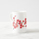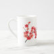 Esta taza de la porcelana de hueso se adorna con una rama de flores de cerezo rojas y coralinas.