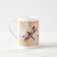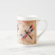 Esta taza de la porcelana de hueso del Flourish de la libélula ofrece mi libélula de la acuarela en un fondo acodado arte digital.