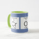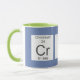 Goce de una taza de café o de té en este Cr azul/verde elegante O W del deletreo de la taza con la tabla periódica.
