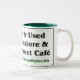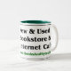 Esta taza ofrece el logotipo, la breve descripción, y la dirección de la tela de los libros y de la librería de los octetos en Quincy céntrico, la Florida.