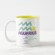 Esta taza de los rasgos del acuario hace un regalo de cumpleaños perfecto para cualquier acuario. El acuario es el undécimo Rótulo del zodiaco e incluye a todos los individuos nacidos a partir del 20 de enero - 18 de febrero. El símbolo del acuario es el portador del agua. Los rasgos de la personalidad del acuario son amistosos, honestos, inventivos, independientes e imprevisibles. El acuario Birthstone es Amethyst y el planeta del acto del acuario es Urano