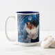 Celebra el amor bajo las estrellas con esta encantadora taza de novia y novio, que presenta a una romántica pareja abrazada bajo la luz de la luna. El soñador fondo celestial y el elegante diseño arqueado hacen de esta taza un hermoso recuerdo para bodas, aniversarios o recién casados que comienzan su viaje juntos. Perfecta como regalo para una despedida de soltera, favor de boda o simplemente como un recordatorio diario de tu propia historia de amor.