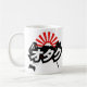 Taza de OTAKU que ofrece imágenes icónicas de la cultura japonesa tales como robots gigantes, monte Fuji, espadas del samurai, videojuegos y chicas lindos del animado. Determinación contra el sol naciente en el fondo. Las letras "オタク" se escriben en katakanas japonesas. El diseño se dedica a las fans del cultura Pop japonés del animado y del manga.