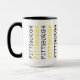 Palabras Pittsburgh en negro y oro que envuelve alrededor de la taza de café - un gran diseño de Pittsburgh.