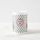 Añade un poco de blancura a Alicia en el País de las Maravillas con este diseño centrado en el corazón. El fondo tiene unos corazones negros diminutos, y después Alicia, de color rosa, está llegando hacia arriba a ambos lados de la taza. En el medio, en un círculo rosado, están las palabras "Bebame". El texto es editable si es necesario, siempre que se ajuste al espacio. Por ejemplo, podría incluir en su lugar las iniciales del cliente o del destinatario. Este diseño agrega un poco de asombro y humor a los cuentos, con los acalorados corazones blancos y negros en el fondo. Este diseño es un buen complemento para un boda temático Alicia en el país de las maravillas, fiesta de cumpleaños, duchas, aniversario, hito literario u otras ocasiones divertidas.