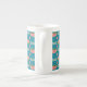 Una taza de bonito de China ósea, con un patrón de ilimidades de agua rosada y libélulas azules, de un collage de papel pintado a mano de Judy Adamson. Excelente regalo para alguien con un cumpleaños de julio; parte de la colección Posh & Painterly 'Lily Pond'.